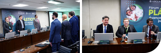 Abertura do Fórum: na primeira foto, a partir da esquerda, Paulo Teixeira (Abiplast),